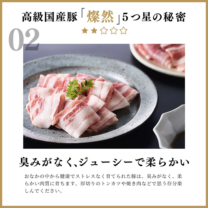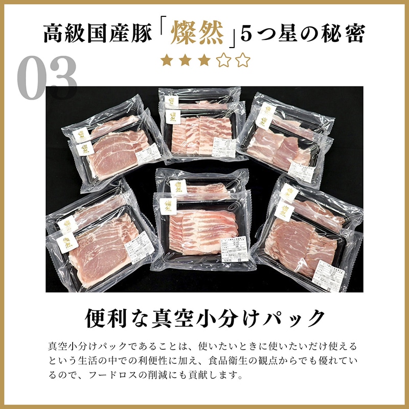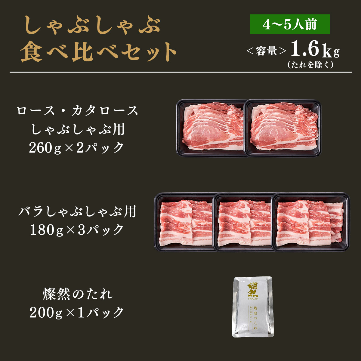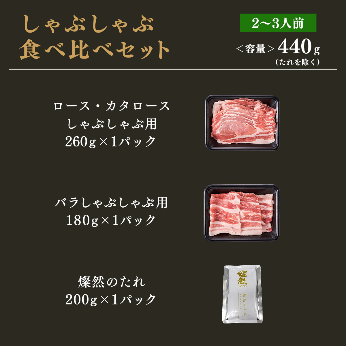 | セット内容 | (2~3人前) ロース・カタロースしゃぶしゃぶ用/260g×1パック バラしゃぶしゃぶ用/180g×1パック 燦然のたれ/200g×1パック (4~5人前) ロース・カタロースしゃぶしゃぶ用/260g×2パック バラしゃぶしゃぶ用/180g×3パック 燦然のたれ/200g×1パック |