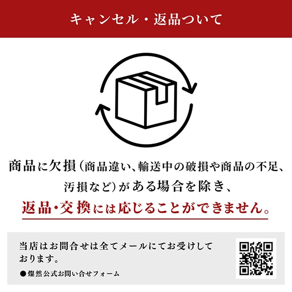 商品には万全を期しておりますが、万が一不良品がございましたら、事前にご連絡の上、商品到着後2日以内に返品をお願いします。