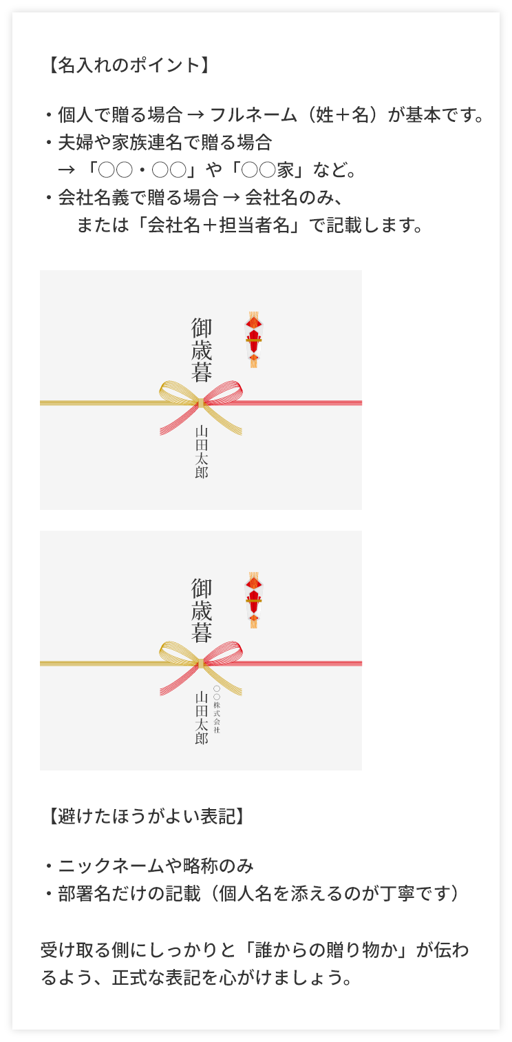 はい、無料で熨斗を承っております。対応商品をカートに追加後、名入れをご希望の方は入力欄にご記入ください。